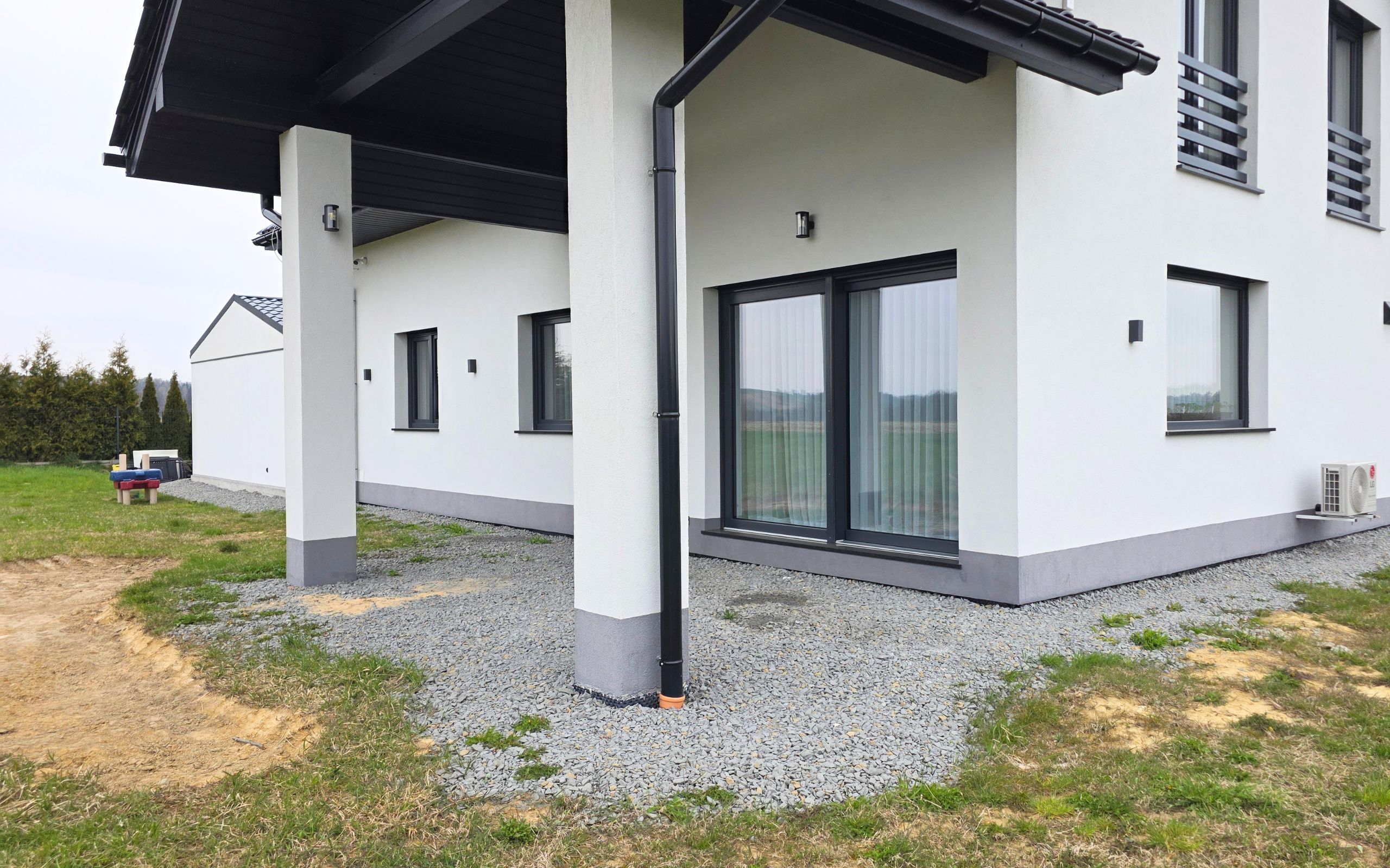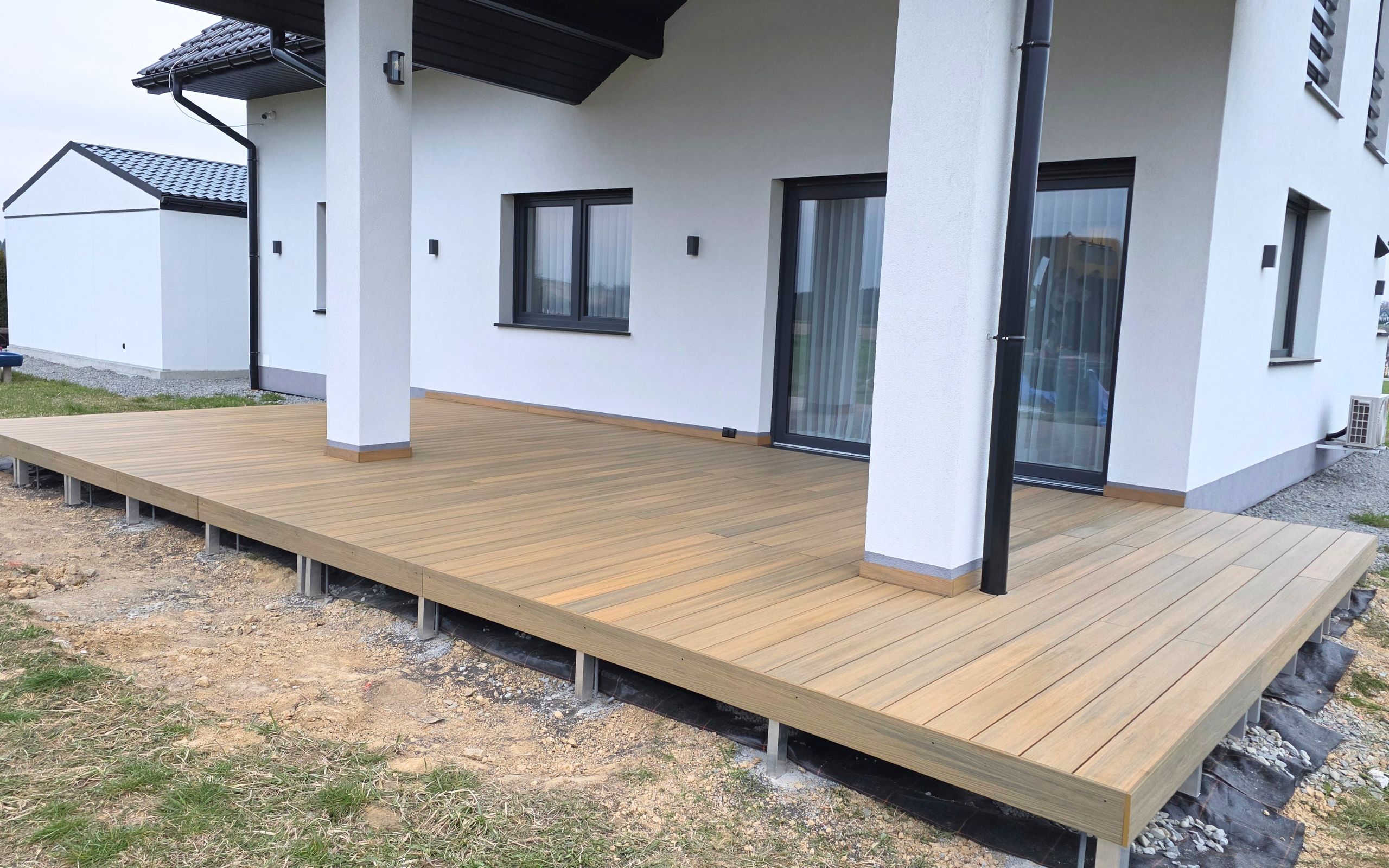 Stylowa przestrzeń przy domu – połączenie desek kompozytowych Modern Złoty Dąb i Szary | Imielin